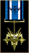 The Medal of Valor [MV] is awarded in the name of the Trade Federation, to a person who, while a member of the Armed Forces, distinguishes himself or herself conspicuously by gallantry and intrepidity at the risk of his or her life above and beyond the call of duty while engaged in action against an enemy of the Trade Federation; while engaged in military operations involving conflict with an opposing foreign force; or while serving with friendly foreign forces engaged in an armed conflict against an opposing armed force in which the Trade Federation is not a belligerent party. The deed performed must have been one of personal bravery or self-sacrifice so conspicuous as to clearly distinguish the individual above his or her comrades and must have involved risk of life. On the reverse of the Medal the date of the act is inscribed, along with the name, rank and unit of the recipient. Only the Viceroy can award this honor.