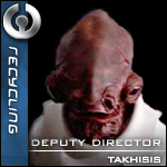 At the dump, Takhisis was often in competition with a GRZ-6B Wrecker for some parts, he remembered the tag on its side: "Confederate Recycling Company, Proud Member of the Trade Federation". Takhisis sent an application to CRC, now seeing his dream R&D space station with a Trade Federation tag on its side.